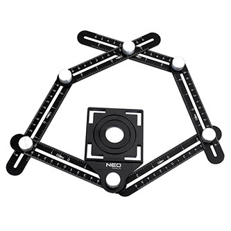 Úhlové pravítko NEO TOOLS 6 ramenÚhlové pravítko, 6 ramen, vyrobeno z hliníku. Vzor otvorů vyrobený z plastu ABS a šest ramen pravítek odstupňovaných od 0 do 6 cm v obou směrech od středu (0 až 2 palce); velikost otvoru: 2,5 cm, 4 cm, 4,5 cm; dělení centimetrů a palců Nástroj je vhodný pro...