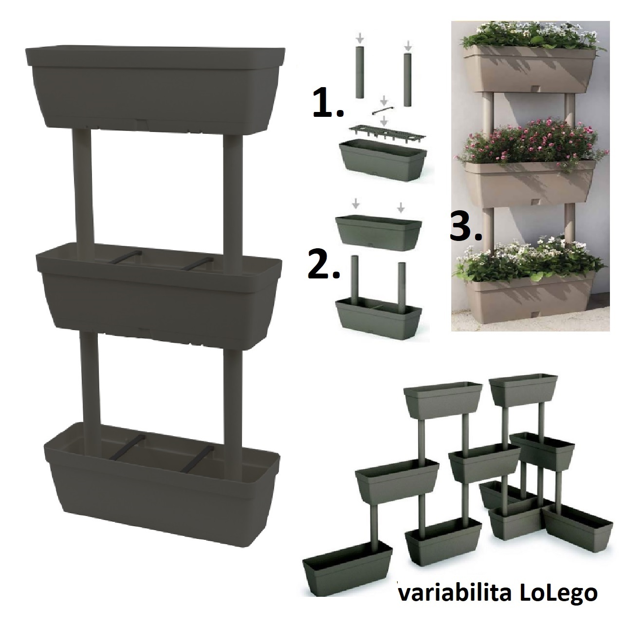 Sada truhlíků se zavlažováním antracit – LoLego