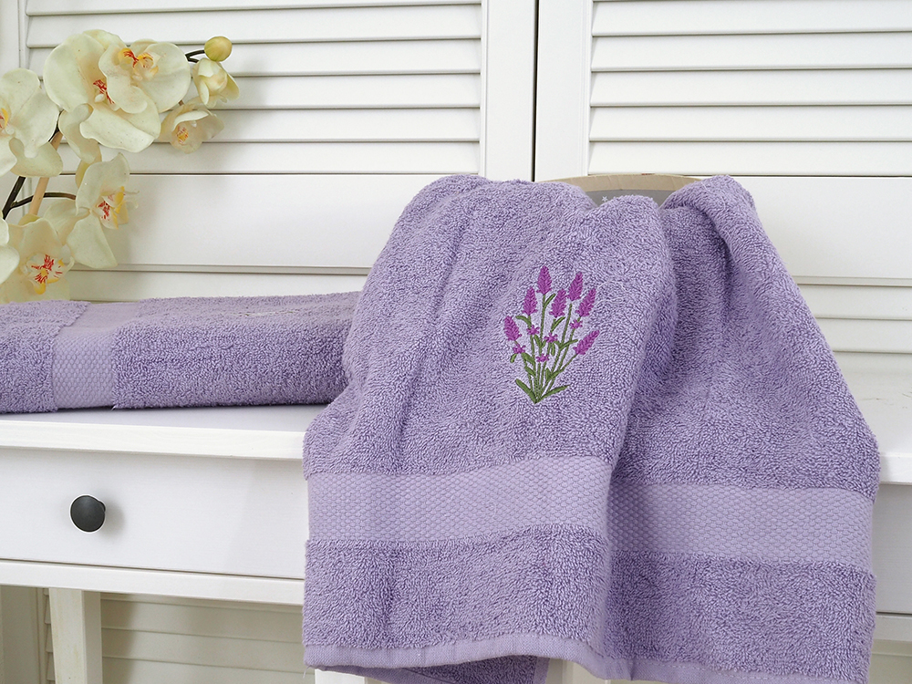 B.E.S. - Petrovice, s.r.o. Osuška froté Adria 70x140 s výšivkou - Fialová s levandulí
