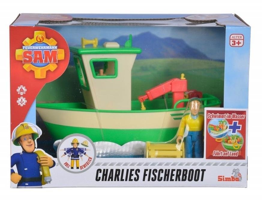 Strażak Sam Łódź rybacka Charliego z figurkąŁódź z popularnej animacji o dzielnym bohaterze Strażak Sam to idealny pojazd do odtwarzania scenek akcji z ulubionej bajki. Zabawę łódką urozmaicą ruchome elementy jak dźwig i mechaniczna korbka.Łódź może unosić się na wodzie oraz jeździć dzięki...