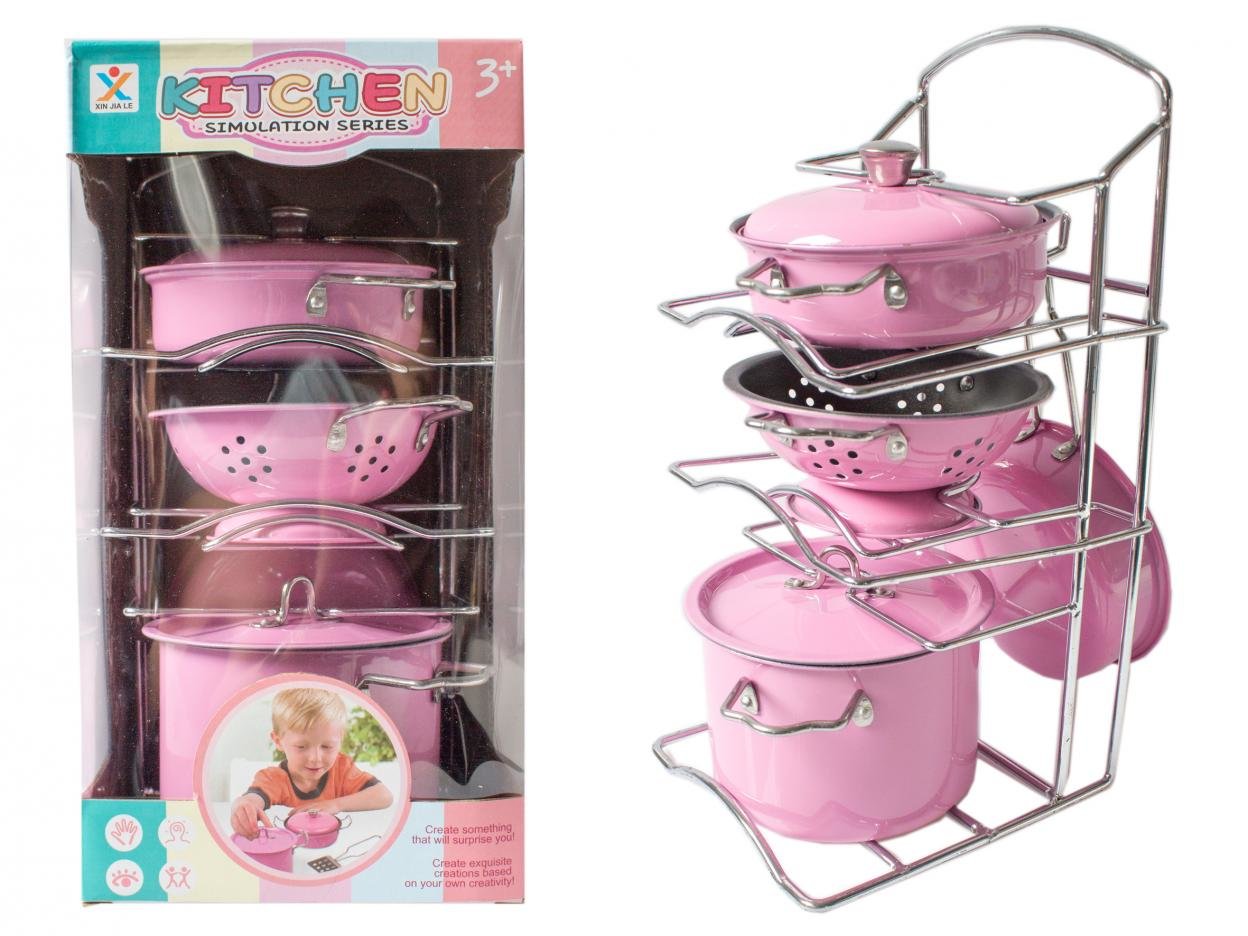 Zestaw naczyń metalowych na stojaku. 7 elementów. prečítať celé