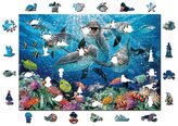 WOODEN CITY Dřevěné puzzle Šťastní delfíni 2v1, 505 dílků EKO