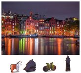 WOODEN CITY Dřevěné puzzle Noční Amsterdam 2v1, 150 dílků EKO