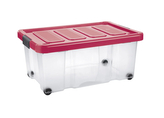 Úložný box s klipem a kolečky PUZZLE 43 l transparent/červená