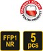 Filtrační protiprašná maska, se zpětným ventilem, s třídou ochrany P1. Chrání dýchací orgány před netoxickými pevnými částicemi, aerosolem pevných částic a aerosoly do 4 NPK. Využití v potravinářském, dřevařském, zemědělském a stavebním průmyslu. Balení je složeno z 5 kusů filtrů FFP1.