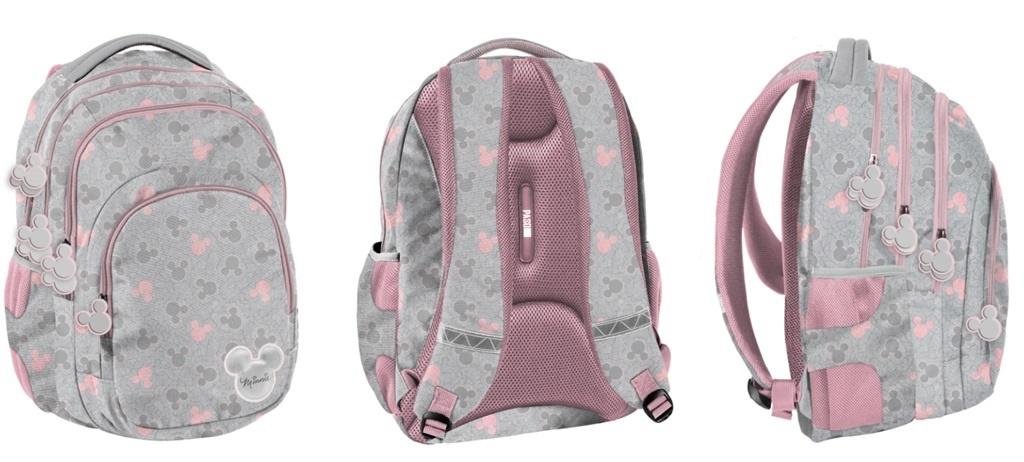 Plecak szkolny. Trzy pojemne komory, kieszeń przednia z organizerem, 2 boczne kieszenie z siatki+materiał. Wzmocnione profilowane plecy evafoam, miękkie wygodne szelki. Wzmocniony i usztywniony spód. Wygodny uchwyt do przenoszenia i uszko do powieszenia. W komorze głównej przegroda (na laptop), w drugiej komorze organizer z kieszenią na zamek, uchwyt na klucze. Elementy odblaskowe dla większego bezpieczeństwa.