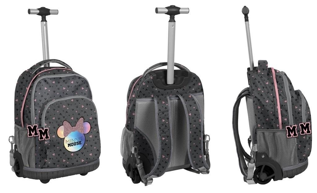 Plecak szkolny na kółkach PREMIUM. Dwie duże komory, jedna obszerna kieszeń na froncie, boczne kieszenie z siatki - mieszczą małą butelkę, bidon lub termos, materiałowy uchwyt górny. Wyciągana 2-stopniowa aluminiowa rączka, duże wytrzymałe kółka. Wzmocnione plastikowe dno. Odpinane szelki chowane pod osłonę stelaża.