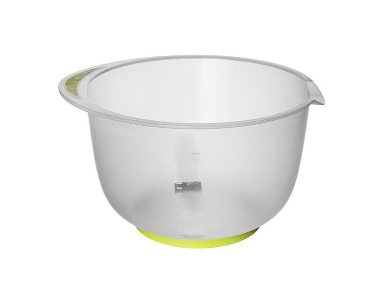Šlehací mísa s výlevkou a měkčeným úchytem Vám pomůže při šlehání krémů, těst, šlehačky... Výhodou je výška nádoby, která zabraňuje rozstřikování šlehané hmoty. Vyznačená odměrka po 200 ml. Materiál: plast. Protiskluzové dno. Rozměry: objem 2 l, pr. 19 cm, v. 12 cm. Vhodná pro teploty od -25 °C do 95 °C. Vhodná do myčky i MVT.