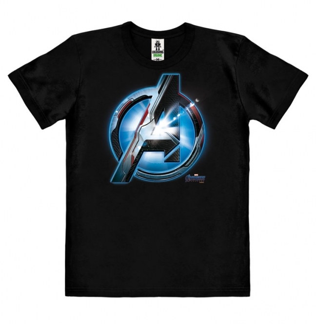 Atraktivní černé pánské tričko s krátkým rukávem a znakem Avengers - na přední straně.