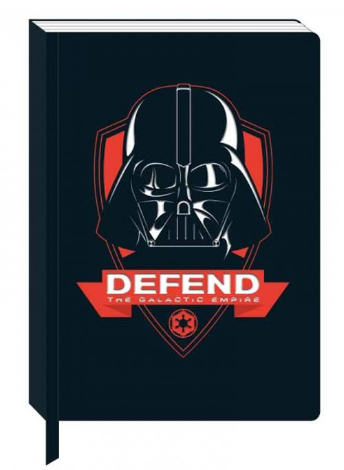 Oficiální zápisník z katalogu produktů s logem, fotografiemi herců a grafikou ze slavné filmové sci-fi ságy Star Wars.