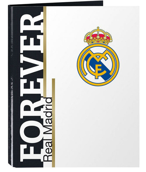Oficiální pořadač a doplňkové zboží z katalogu produktů se znakem a grafikou v klubových barvách slavného španělského fotbalového klubu Real Madrid CF.
