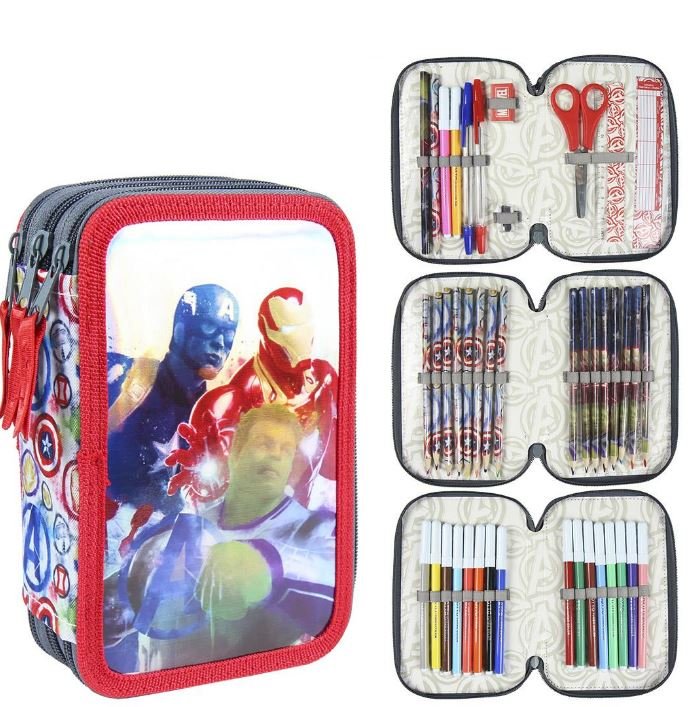 Školní trojdílné pouzdro Avengers: penál plněný - 42 položek (13 x 20 x 7 cm)
