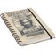 Béžový zápisník ve formatu A5 s kroužkovou vazbou a černou gumičkou stahující celý zápisník s tvrdými deskami....
