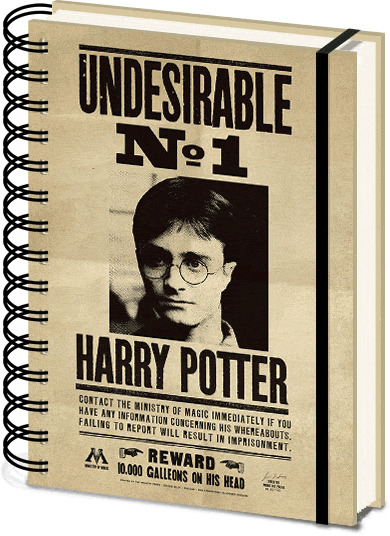 Oficiální zápisník z katalogu produktů s logem, fotografiemi a grafikou filmové ságy o Harry Potterovi.