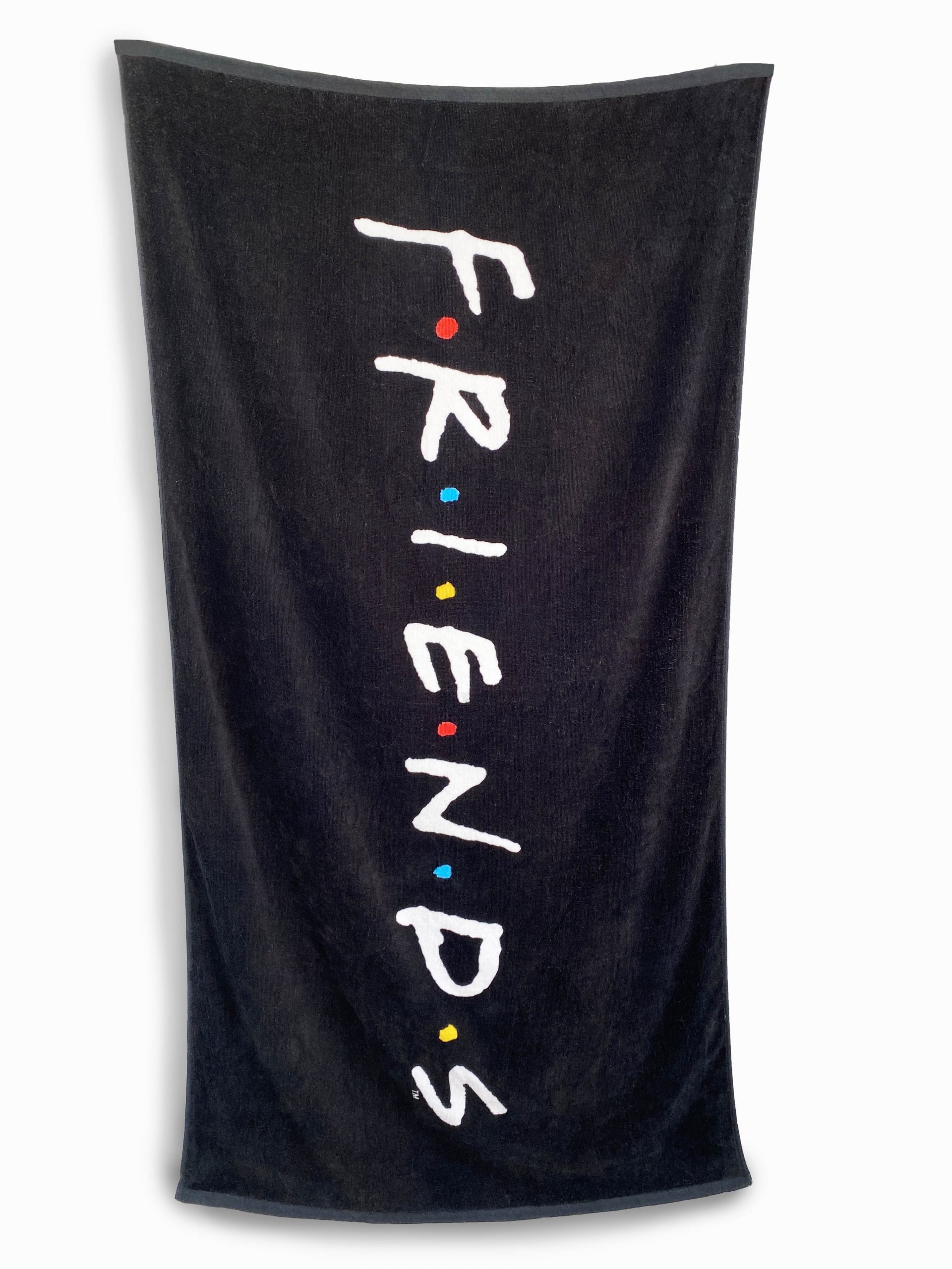 Černá osuška inspirovaná seriálem Přátelé a jeho logem.