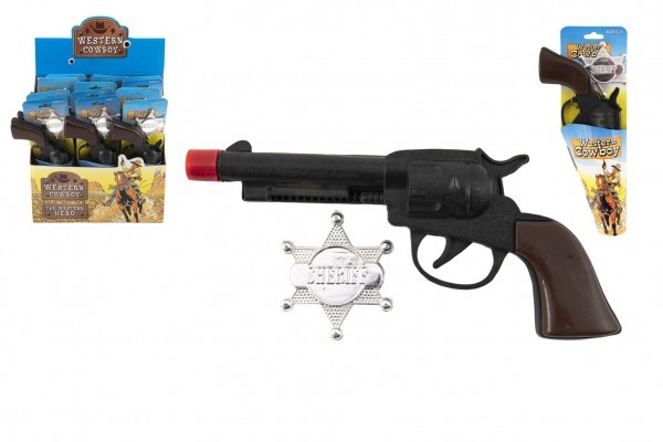Pištoľ / Kolt klapací + šerifská hviezda kovboj plast 20cm na karte