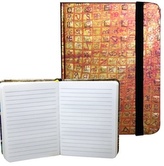 Zápisník s gumičkou 95x140 mm zlatý s červenou mriežkou A