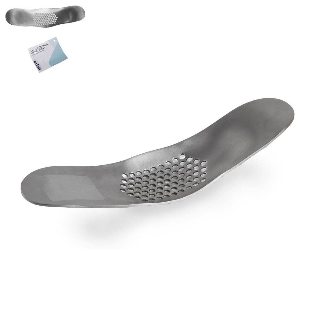 Malý, ale šikovný zlepšovák, jak prolisovat česnek. Tento nerezový lis, neboli třítko na česnek je praktickým pomocníkem. Jeho přitlačením na stroužek česneku a kolébáním ze strany na stranu protlačíte česnek otvory. A lžičkou ho pak snadno setřete z kolébky.