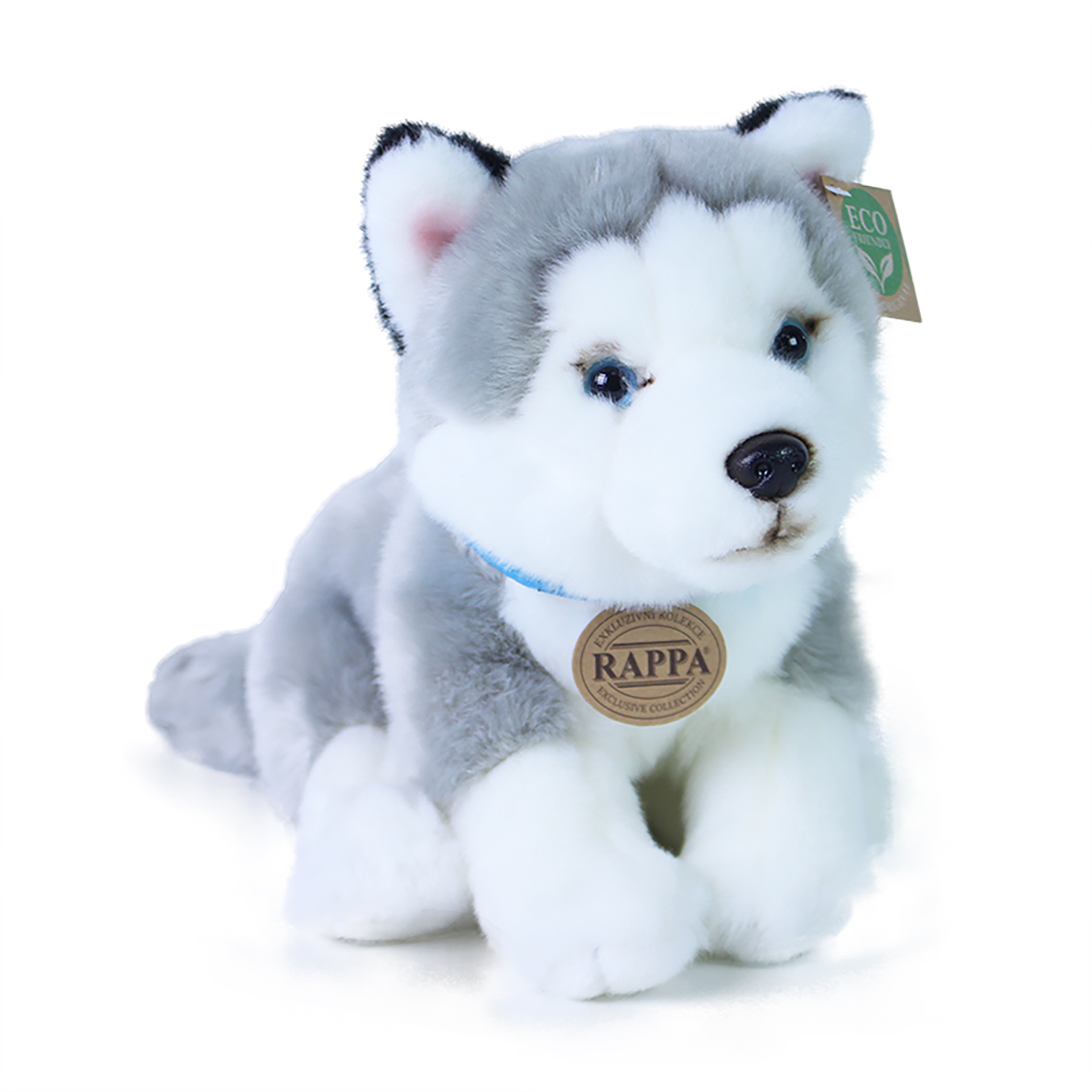 Krásný plyšový pes husky o velikosti 25 cm. Pes je vyroben z vysoce kvalitní plyše a je tak součástí exkluzivní kolekce plyšových hraček RAPPA. Co to vlastně ECO-FRIENDLY znamená? Výplň plyšové hračky je vyrobena z recyklovaných PET lahví. Tento materiál je zcela bezpečný, na omak nerozeznatelný...