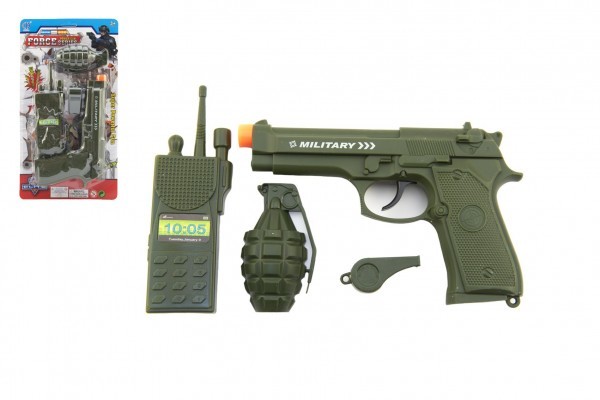 Vojenská souprava, se kterou si kluci mohou vyzkoušet autentický pocit vojáka nasazeného v akci. Sada obsahuje pistoli, vysílačku, granát a jiné nezbytnosti nutné k výbavě každého vojáka. Vše vyrobeno z kvalitního a odolného plastu.