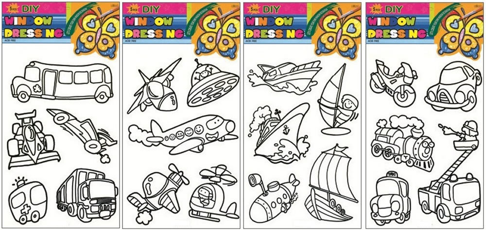 Predlohy na maľovanie na sklo s vystúpenou kontúrou sú ideálnym nástrojom pre každého, kto chce ozvláštniť svoje okná, zrkadlá či iné sklenené plochy originálnym a pekným motívom dopravných prostriedkov.