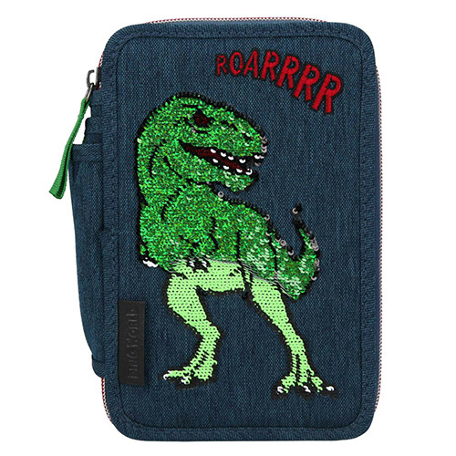 Penál s výbavou Dino World T-Rex, třípatrový, měnící flitrový obrázek