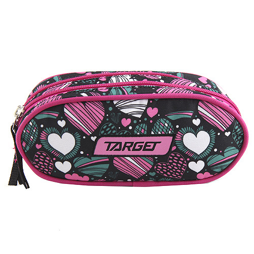 Školní penál Target Srdce, barva růžovo-zelená