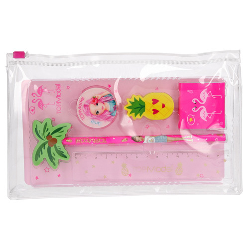 Psací set Top Model Tropical, 6 ks - tužka, pravítko, 2 x guma, ořezávátko, bloč