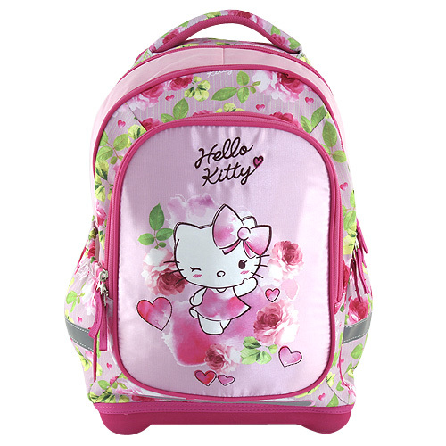Perfektně zpracovaný voděodolný batoh s vnitřním prostorem dvoukomorovým, kde druhá kapsa je oddělena přepážkou, bezpečně uzavíratelný na zip. Prostorná přední kapsa s praktickým organizérem a kovovým kroužkem na klíče. Přední stranu zdobí postavička oblíbené kočičky s mašlí a nápis Hello Kitty....