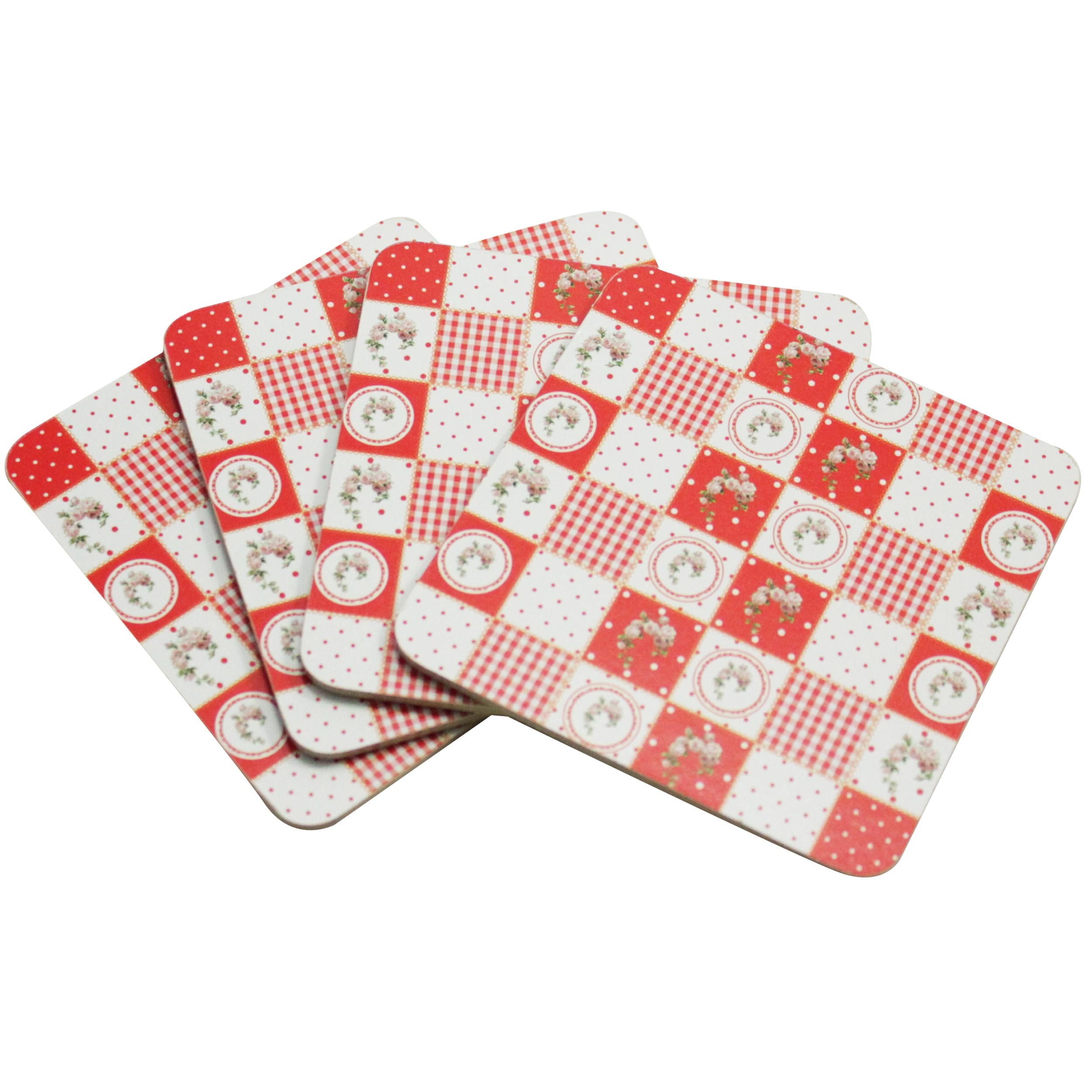 Podtácek MDF 10*10 cm, Elegant červená, set 4ks