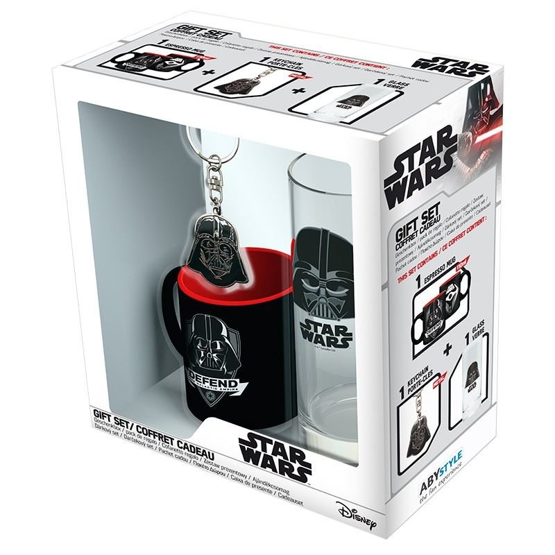 Dárková sada s grafikou lorda Darth Vadera z filmové sci-fi ságy Star Wars je určena pro všechny milovníky Hvězdných válek a pro obdivovatele této postavy. V pěkné krabičce s průhlednou stěnou naleznete malý hrnek na čaj či kávu, sklenici a kovovou klíčenku. prečítať celé