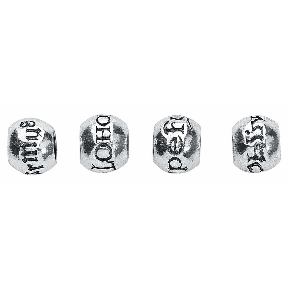 Sada 4 náhodných postříbřených korálků s kouzly na motivy příběhů o čarodějnickém učni Harry Potterovi. Na korálcích můžete nalezt vyrytá tato kouzla: Expelliarmus, Stupefy, Alohomora nebo Obliviate. Korálky jsou kompatibilní s jinými přívěsky a náramky z kolekce Harry Potter.