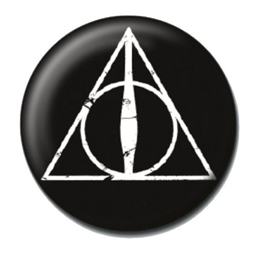 Placka se znakem Relikvie smrti z filmů a knih o čarodějnickém učni Harry Potterovi. prečítať celé