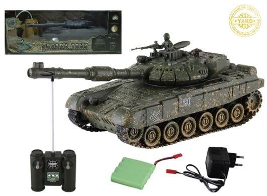 Balení obsahuje tank na RC dálkové ovládání, dosah 25–50m. Funkce jízdy všemi směry, stoupání 45°, zpětný chod, otočná vež 330°, zvuk-světlo prečítať celé
