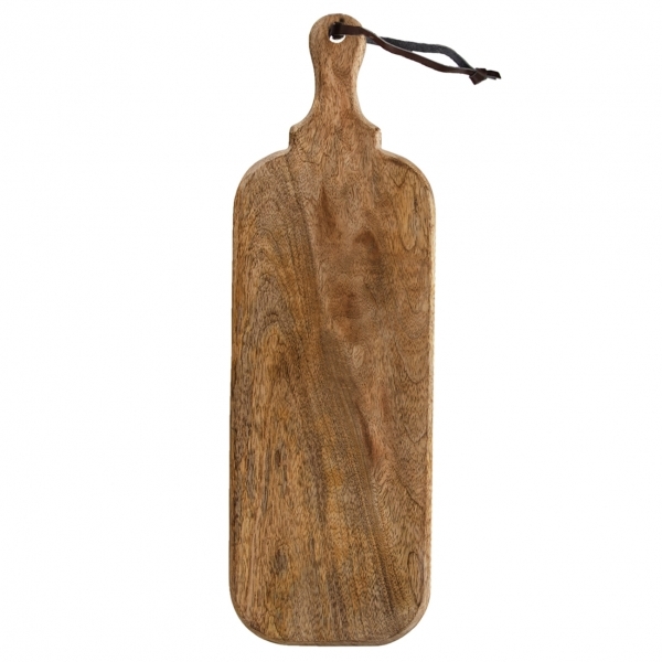 Díky tomuto kuchyňskému prkénku se vaše stolování stane nevšedním zážitkem. Prkénko je ideální na servírování vaší snídaně nebo večeře. Je možné je také zavěsit, vytvoří tak krásnou dekoraci v době, kdy je nepotřebujete. Snadno se udržují, stačí je lehce otřít a jsou připravena k dalšímu servírování. Materiál: dřevo mango. Rozměry: 50,5x16x2,5 cm. Jednou za čas natřete jedlým olejem. Je možné, že po tomto procesu mangové dřevo ztmavne.