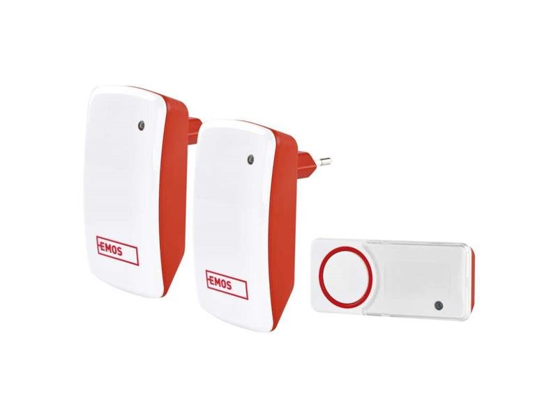 barva: červená|dosah tlačítka: 150 m|maximální hlasitost zvonění: 110 dB|možnost přidat další tlačítko: ano, max. 8|napájení hlavní jednotky: 230 V AC|napájení tlačítka: bez napájení|optická signalizace na tlačítku: ano|optická signalizace na zvonku: ano|počet melodií: 10|počet přijímačů v...