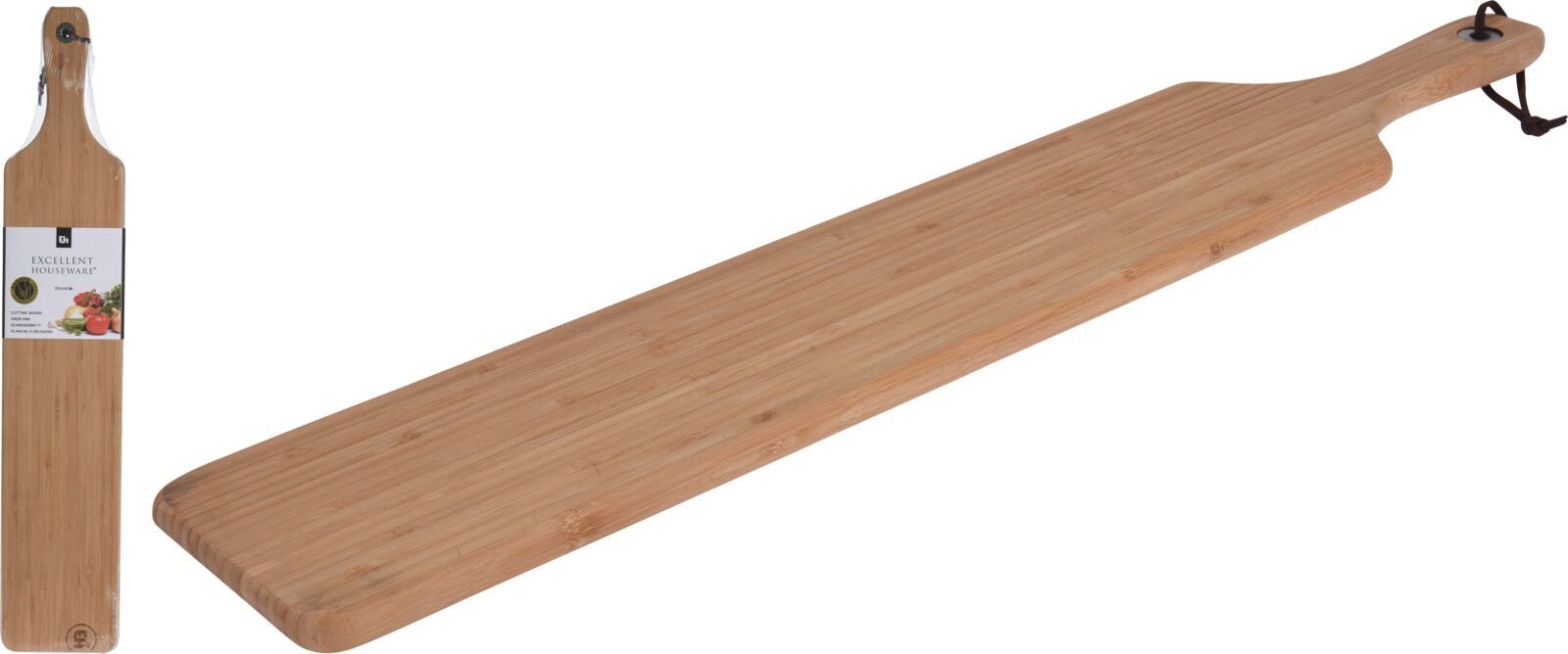 Stylové servírovací dřevěné prkénko s rukojetí vyrobeno z bambusového dřeva. Servírované jídlo na něm bude vypadat skvěle. Vhodné jak na sýry, jednohubky, uzeniny, masa,.. Prkénko je snadno omyvatelné, lze použít vlhký hadřík, teplou vodu nebo jemný mycí prostředek, není však vhodné do myčky. Rozměry - 75x14 cm.