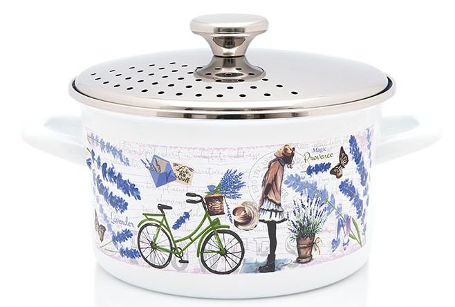 Smaltovaný hrnec PROVANCE s částěčně děrovanou nerezovou poklicí pro snadný odvod páry. Hrnec je vhodný do myčky nádobí. Lze jej použít na všechny typy varných ploch, včetně indukce. Objem 3,5 l. Materiál - smalt, nerez. Rozměry - výška (bez pokličky) 12,4 cm, výška (s pokličkou) 18 cm, průměr 21,5 cm.