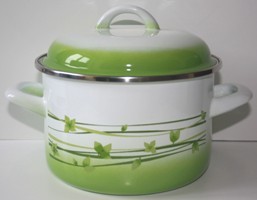 Smaltovaný hrnec s poklicí, motiv lístků, objem 4 l. Je vhodný na všechny typy varných ploch, včetně indukce. Lze jej použít do myčky nádobí. Rozměry - průměr 20 cm, výška 13 cm. prečítať celé