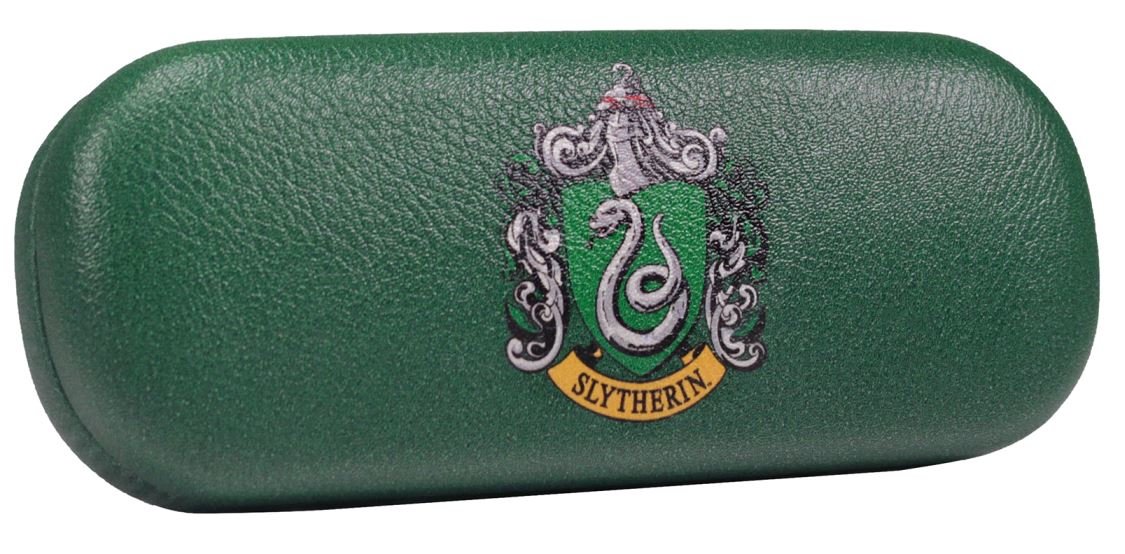 Zelené pouzdro na brýle s grafikou a logem koleje Zmijozel, ze slavné filmové ságy Harry Potter.
