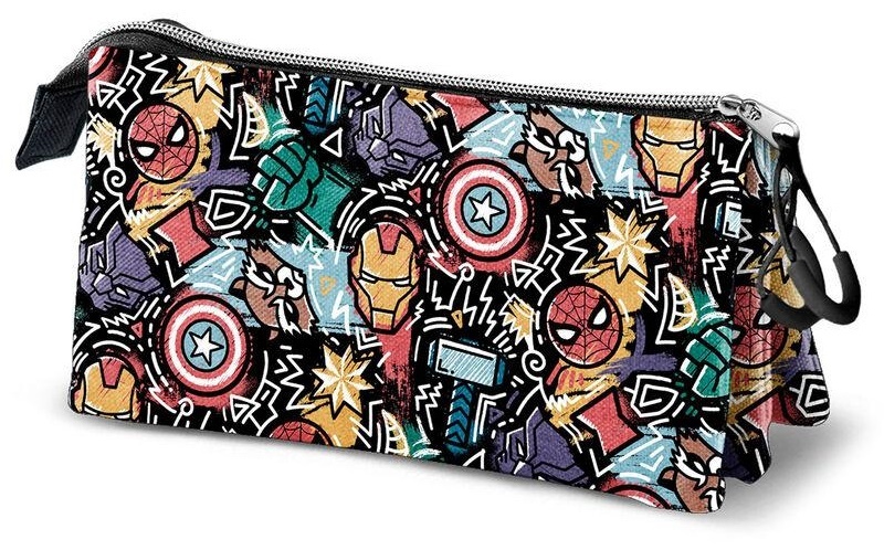 Trojdílný školní penál na tužky s motivem postaviček z filmu Avengers. Zapínání na zip.
