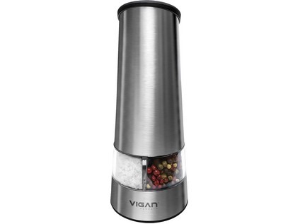 Elektrický mlýnek 2 v 1 pro čerstvé namletí pepře a soli, vhodný do každé kuchyně, nastavení hrubosti mletí pro každý zásobník samostatně, kvalitní keramický mlecí systém, oddělené plnění pro sůl a pepř, jednoduché ovládání jednou rukou, mletí stiskem jednoho tlačítka, moderní minimalistický design, vyroben z kvalitního broušeného nerezu a plastu, napájení 6 ks baterií AAA 1.5 V (baterie nejsou součástí balení)