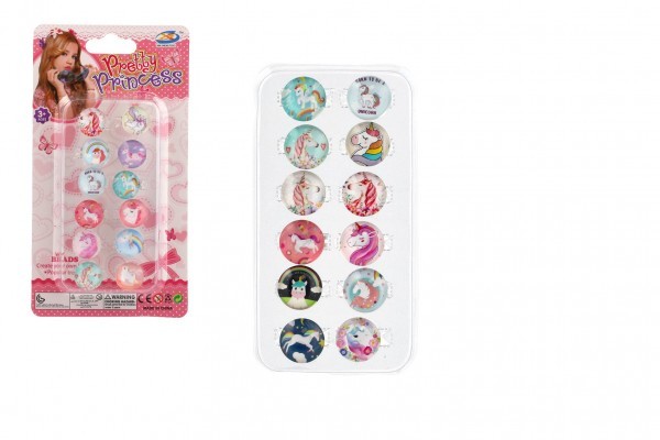 Prstienky/Prstienka sada jednorožec kov 12ks nastaviteľná veľkosť 2 druhy v blistri 10x19cm