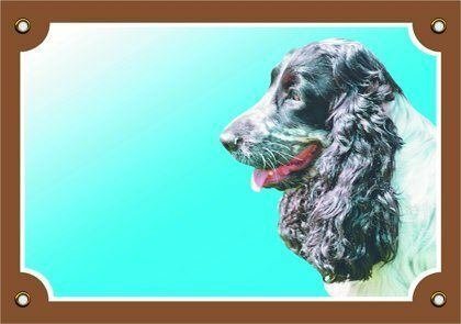 Barevná cedulka Pozor pes, Anglický kokr čb