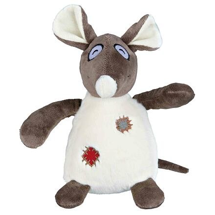 Plyšová krysa se záplatami a zvukem, 16 cm - DOPRODEJ