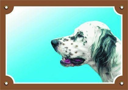 Barevná cedulka Pozor pes, Anglický setr bílý