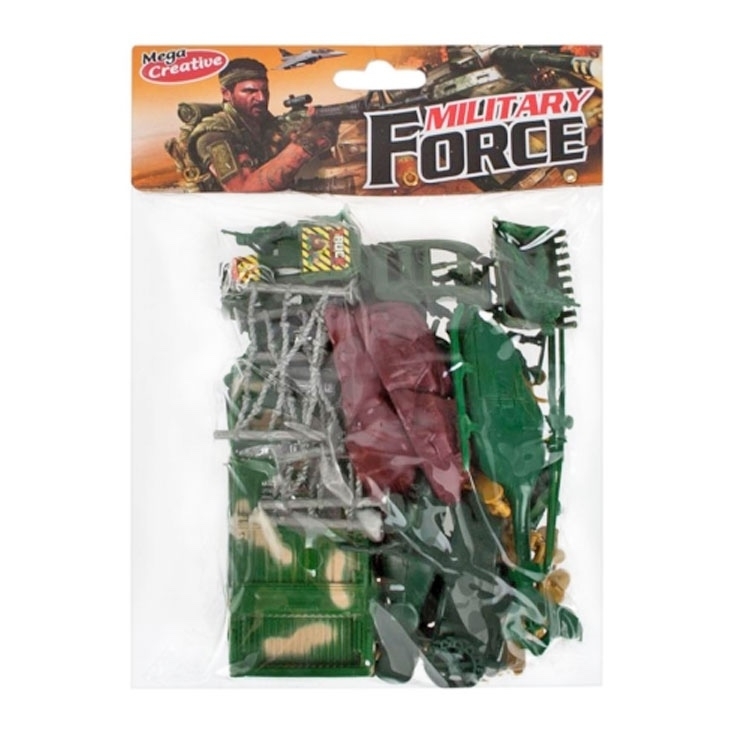 Voják je mezi skupinou malých dětí stejně oblíbené povolání jako policista. Hra s Military Set poskytne každému dítěti velkou dávku zábavy a probudí v něm kreativitu! Sada obsahuje: 2 vojenská vozidla, vrtulník, motorku, dělo a figurky vojáků. Vše je vyrobeno z plastu. Produkty určené pro děti ve věku 3+. Nevyžaduje napájení z baterie. Rozměry balení (D x V) [cm]: 18x26.