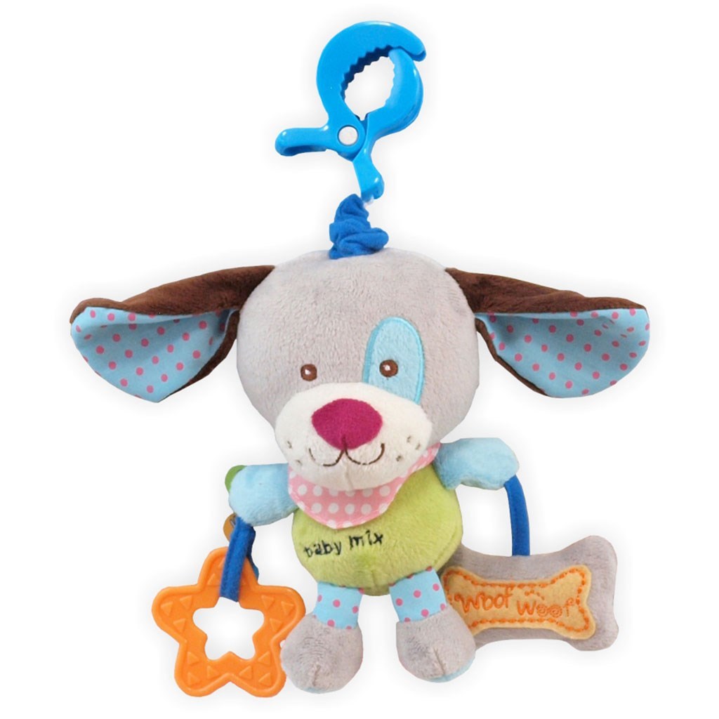 Krásná plyšová hračka se zvukem Baby Mix Pejsek. Hračka je vyrobena z měkké plyšové látky s klipem na uchopení a kousátkem ve tvaru květinky. Melodie hracího strojku upoutá zájem Vašeho ditěte a uklidňuje ho. Ideální pro miminka. Části hračky rozvíjejí smyslové vnímání dítěte a podněcují jeho fantazii. Výška cca 21 cm. Hračka je vhodná pro děti od 12 měsíců.