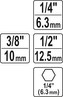- Dĺžka adaptérov: 65 mm (1/4" a 3/8"), 70 mm (1/2")