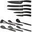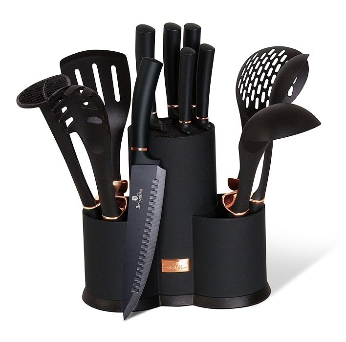 - dokonale praktická sada celkem 12ti kusů kuchyňského vybavení a nožů ve stojanu